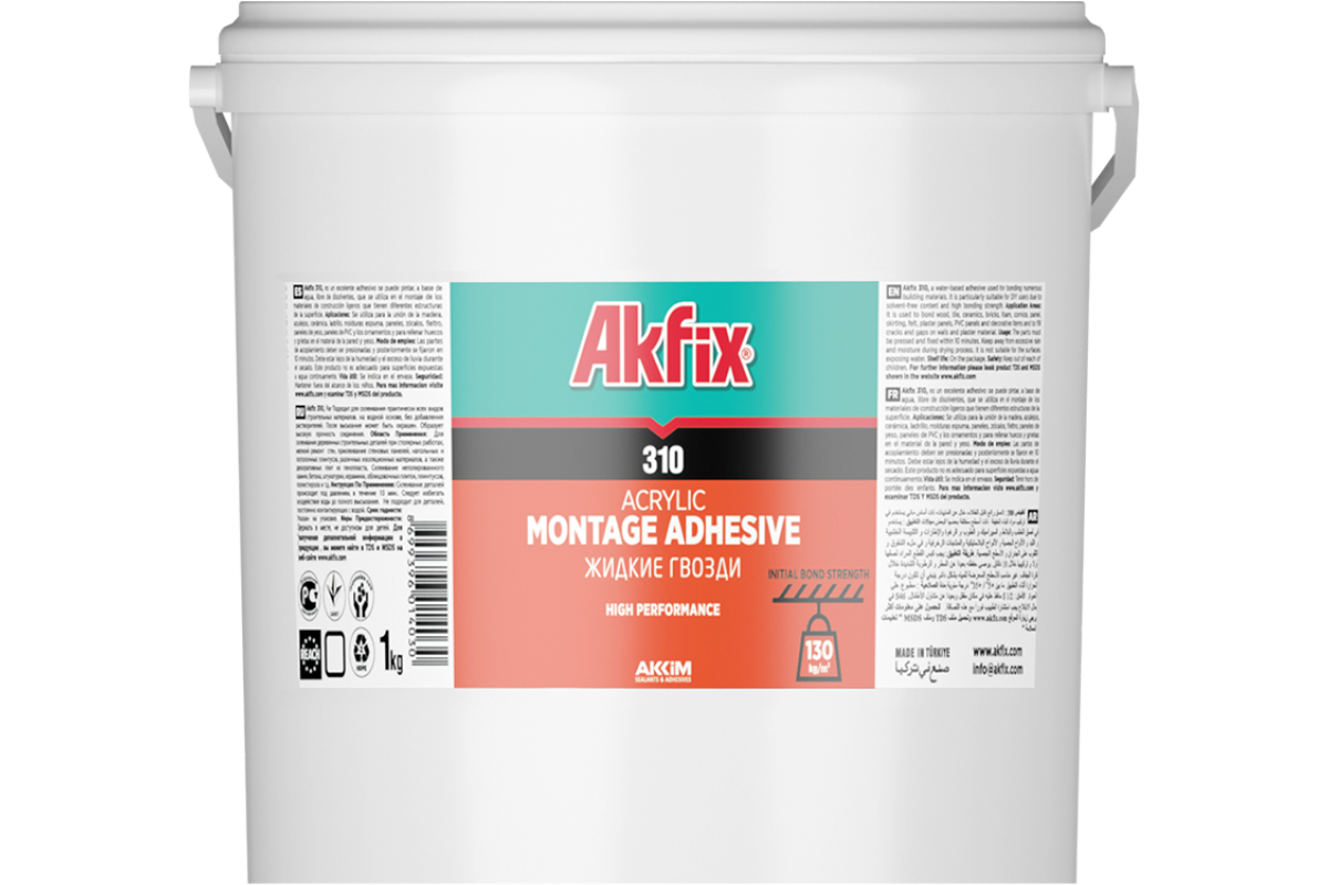 Akfix 310 – tai vandens pagrindo klijai, skirti įvairių statybinių medžiagų klijavimui. Ypač tinkami „pasidaryk pats“ darbams dėl tirpiklių nebuvimo sudėtyje ir didelio sukibimo stiprumo.